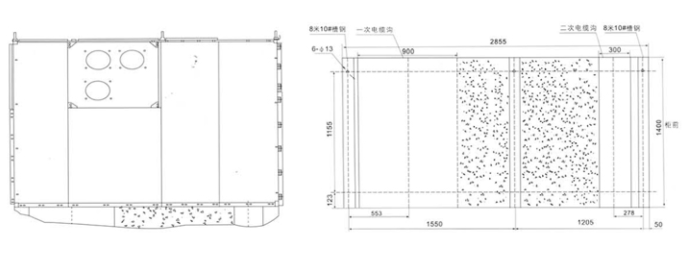El equipo de conmutación está diseñado de acuerdo con los estándares GB3906 - 1991 e IEC298 para equipos de conmutación cerrados de metal blindado. El conjunto está compuesto por dos partes: el gabinete y la parte extraíble (carrito). La estructura del gabinete está prefabricada y atornillada entre sí. La parte interna del conmutador se divide en una sala de interruptores, una sala de barra de bus principal, una sala de cables y una sala de instrumentos de relé con una partición metálica. El nivel de protección del recinto alcanza IP3x, el nivel de protección entre cada compartimento es IP2X, y todas las partes estructurales metálicas están conectadas a tierra de manera confiable, y cada compartimento del sistema de circuito principal tiene un canal de liberación de presión de escape independiente.