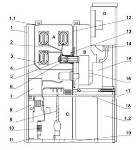 A.. Compartimiento del interruptor B. Compartimiento Busbar