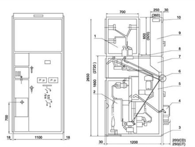 De acuerdo con el diseño del gabinete, la sala de relé está instalada con un relé, la puerta puede estar equipada con relé de señal, instrumento indicador, luz de señal, instalación del interruptor de transferencia y cámara de operación, la parte trasera es la sala de barra de bus, la parte inferior es la sala de cables, el usuario puede cablear fácilmente. La parte delantera es la sala de interruptores, que facilita el mantenimiento de los conmutadores. El mecanismo interno del gabinete se muestra en la Figura 1, Figura 2 y en el manual del producto.